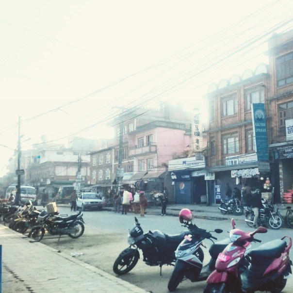 In Bhaktapur’s busy bus station’s street, the pavement is swept immaculately clean. Big chicken are foraging, most shop owners with a damping cup of tea between the palms of their hands. It ‘s not that cold, 8.30 am. I change bus on my way from Nepal Yoga Retreat in Telkot to Kathmandu, on my first day off. Quickly taking a super sweet black tea at a little café outside. I am not into sugar. Maybe because I used to like it too much I try to avoid it now as much as possible. Not today. I am excited to be where I am. I order a second tea right away against any mindful objections. Not much later on the bus to Kathmandu I feel pretty sick. Sugar overload on an empty stomach. But feeling sick in an overcrowded bus in Nepal is somehow the way it should be. I accept my condition. No regrets. I love being here.
